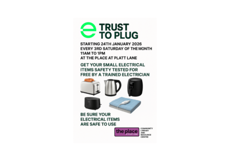 Trust to Plug – Free Electrical Safety Testing From 24th January 2026, Trust to Plug will be running free electrical safety testing sessions at The Place at Platt Lane. Bring along your small household electrical items—such as kettles, toasters, air fryers, heaters, and electric blankets—and have them safety checked for free by a trained electrician. …