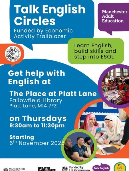 Join our welcoming Talk English Circles sessions at The Place at Platt Lane,